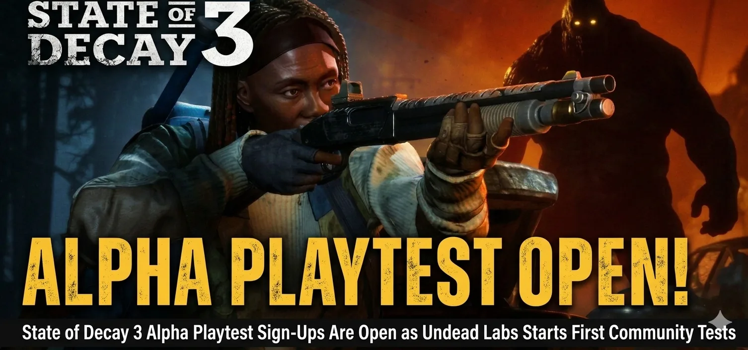 Undead Labs has opened State of Decay 3 alpha playtest sign-ups on the official website, confirming the first community test wave and promising more opportunities for players later this year.